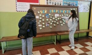Dnes sa na našej škole niesla atmosféra plná milých slov a pozitívnej energie. Uskutočnil sa Deň komplimentov, počas ktorého mali žiaci možnosť napísať pár láskavých slov vo vestibule školy a pripnúť ich na nástenku. Jednoduchým gestom tak mohli potešiť spolužiakov, učiteľov či kohokoľvek, komu chceli vyčariť úsmev na tvári.